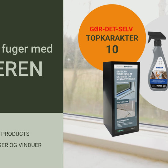 PROTOXFUGEREN er udviklet til at effektivt fjerne skimmel og misfarvninger på fuger i vindueskarme og på badeværelset. Produktet er brugsklar og nemt at dosere. PROTOXFUGEREN-sættet består af 2 produkter, PROTOXHYSAN og PROTOXFUGEREN GEL, der hver løser sin del af opgaven. Sættet indeholder også børste, handsker og fugepen til at påføre GEL.